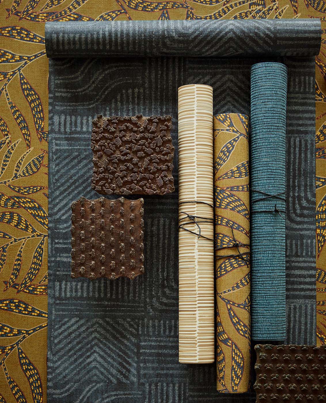 De tactiele dessins in deze collectie zijn geïnspireerd op eeuwenoude technieken van verschillende culturen wereldwijd. Waan jezelf een globetrotter met etnische lijntekeningen, een bladmotief geïnspireerd op traditionele batik, en een groots bloemmotief met een aquarel-achtige ikat uitstraling. Ontdek de wereld in stoere dessins, zoals een grof geweven doek met een gebeitst patroon of een strepenpatroon met de natuurlijke look en feel van grasweefsel en bamboe.